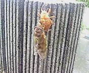 雨にも関わらず、蝉が羽根を乾かしてました。